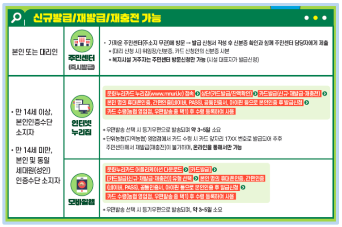 - 온라인 신청: 문화누리카드 홈페이지 접속